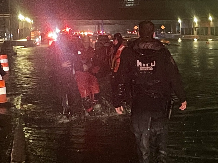 NYPD rescuing a person from flood water cause by Tropical Storm Ida (NYPD Commissioner Dermot Shea via Twitter)