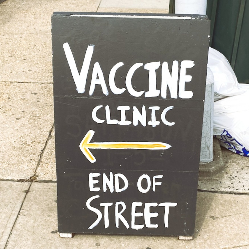 Sign pointing to the vaccination site at the 5-17 46th Road in a Plaxall building in Long Island City (Photo: Plaxall)