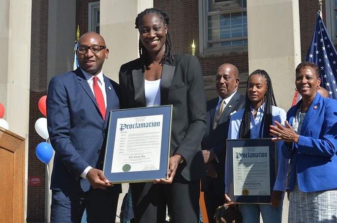 He also presented them with proclamations declaring Oct. 1, 2021 as both Dalilah Muhammad Day and Tina Charles Day in the Borough of Queens.