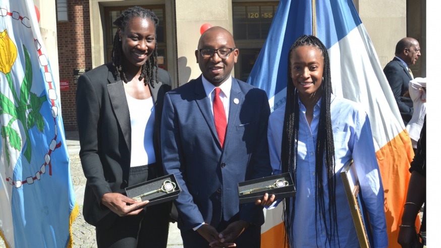 Track and field athlete Dalilah Muhammad and basketball player Tina Charles were both presented with the “Key to Queens” by Queens Borough President Donovan Richards in recognition of their achievements at this year’s Olympic games. The event took place at Queens Borough Hall.