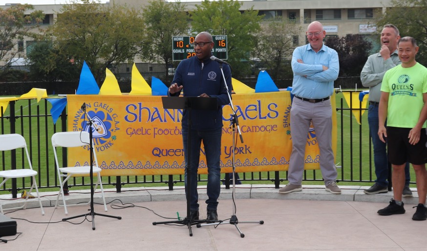 Queens Borough President Donovan Richards congratulated members of the Shannon Gaels club who have advocated for the new field for years.
