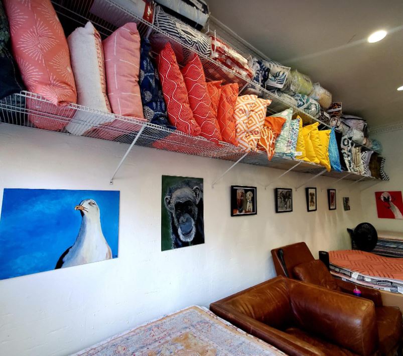 Some home décor items on sale at Kavka Designs Factory Outlet, along with pet portraits created by John Dingley (Photos provided by Danny Lucey)