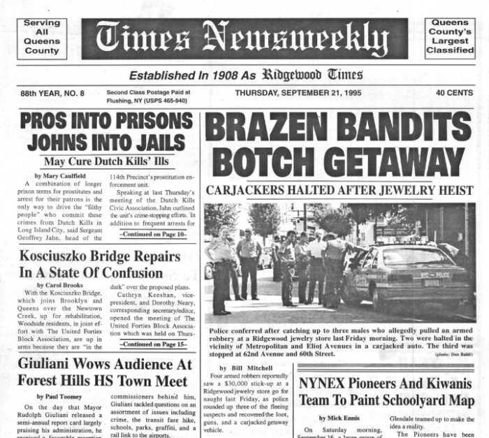 If you have any remembrances or old photographs of “Our Neighborhood: The Way It Was” that you would like to share with our readers, please write to the Old Timer, c/o Ridgewood Times, 38-15 Bell Blvd., Bayside, NY 11361, or send an email to editorial@ridgewoodtimes.com. Any print photographs mailed to us will be carefully returned to you upon request.