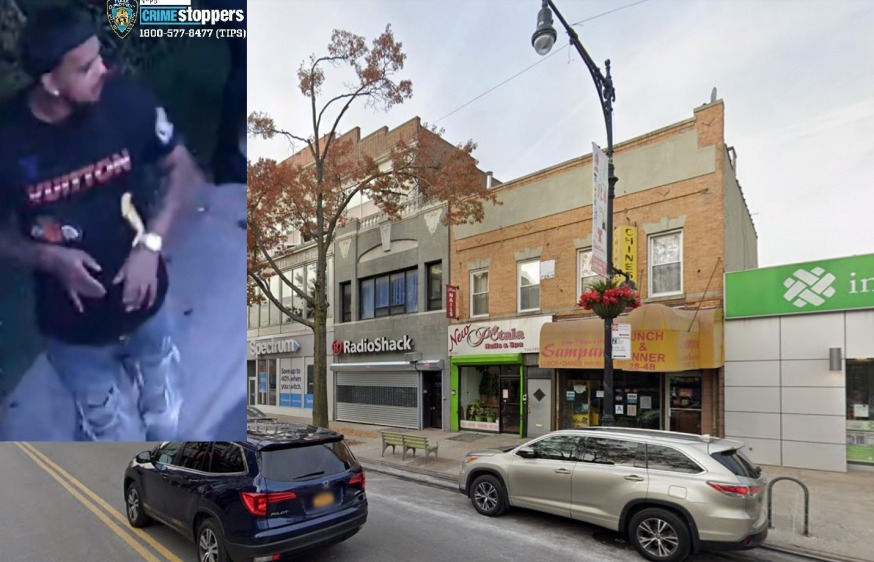 Police are looking for a man wanted for shooting two individuals on Steinway Street early Sunday morning (Photo: NYPD and GMaps)