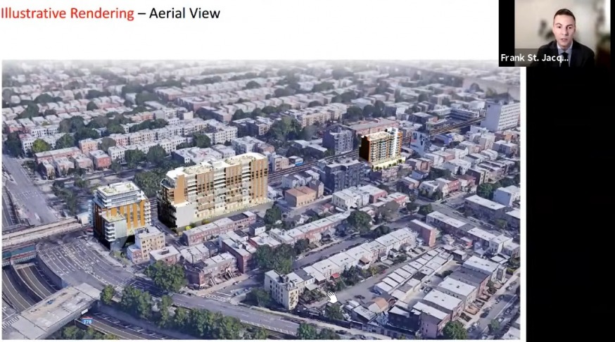 A rendering of the proposed development plan (Community Board 1 hearing)