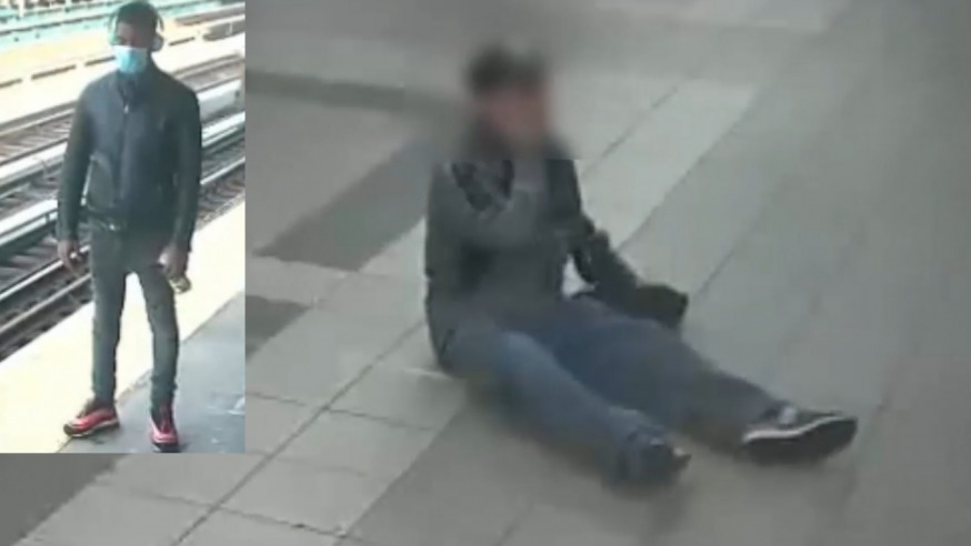 The video shows the straphanger being hit and then slumping to the ground. Police said he suffered a broken jaw.