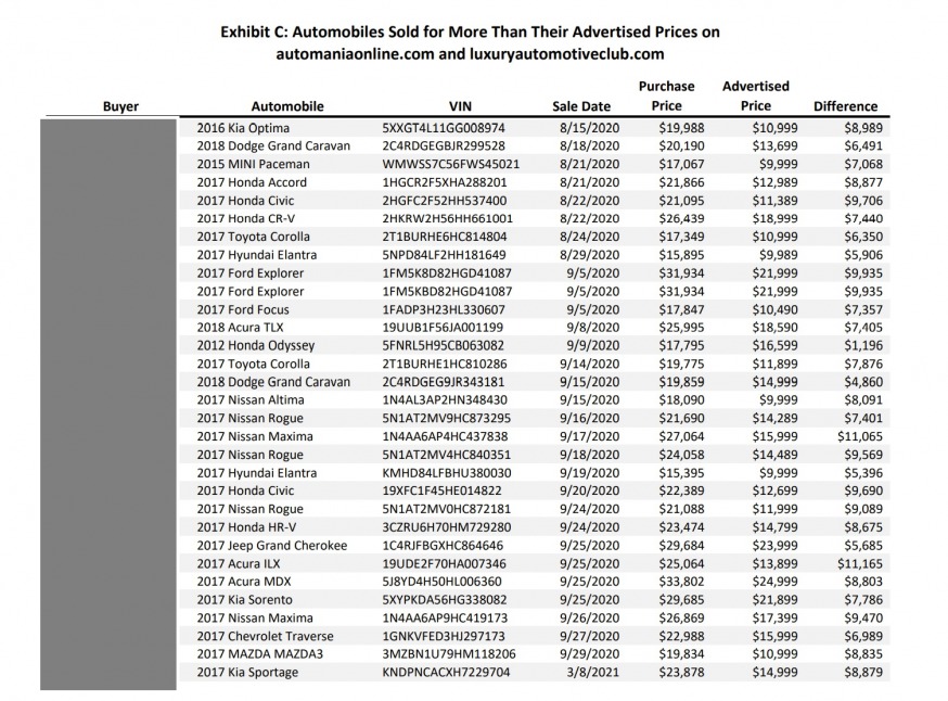 For example, JF Motors, which operates Automania and Luxury Automotive Club, advertised a 2017 Honda Civic for an “internet special price” of $15,795, then added illegal fees—bringing the cash price to $23,780, according to the complaint.