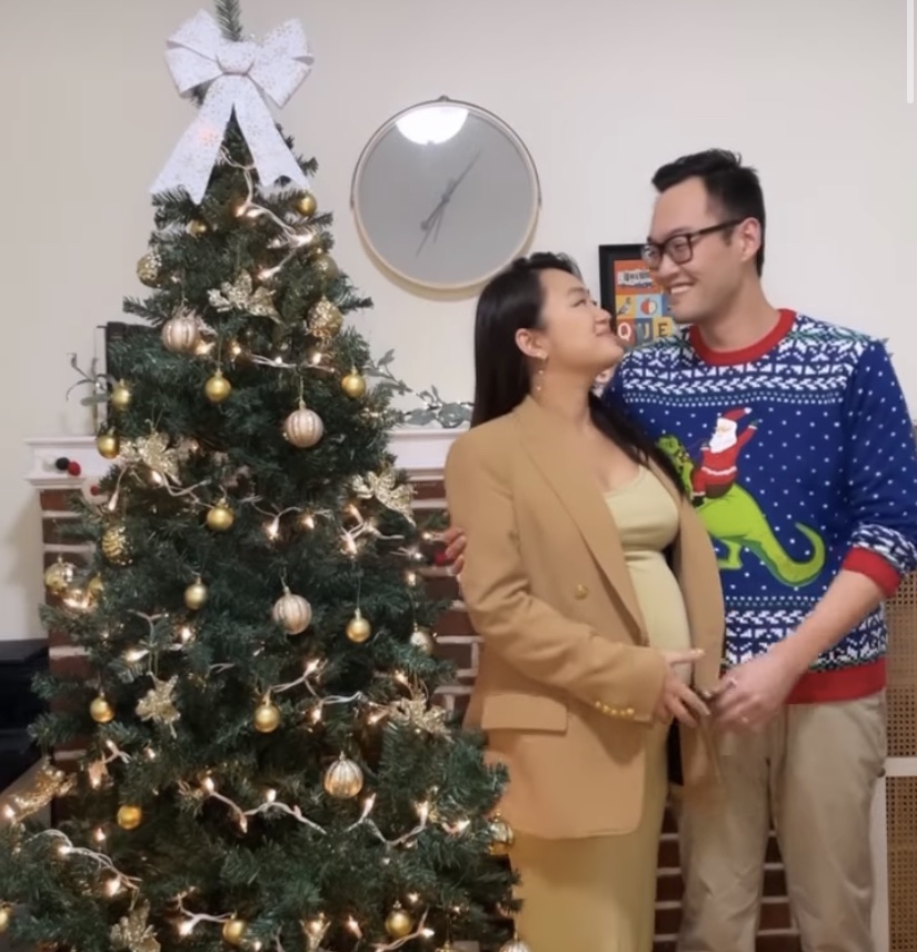 The video features Won showing off her baby bump next to her husband, and campaign manager, Eugene Noh in front of their Christmas tree before the camera pans over to photos of the ultrasound, gingerbread houses and festive holiday garland.