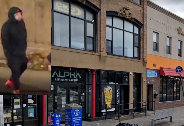 Police released video footage of a man wanted for shooting an individual outside of Alpha Restaurant & Lounge in Astoria Sunday morning (NYPD and GMaps)