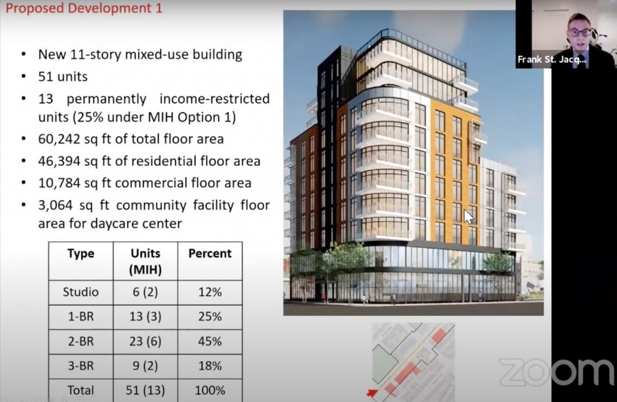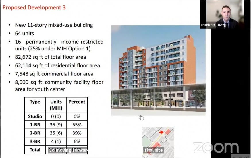 Another concern of the board was that there were too many studios and 1-bedroom units—not enough for families. The project was slightly modified after the community board vote with a reduction in smaller units in favor of 2-unit apartments.