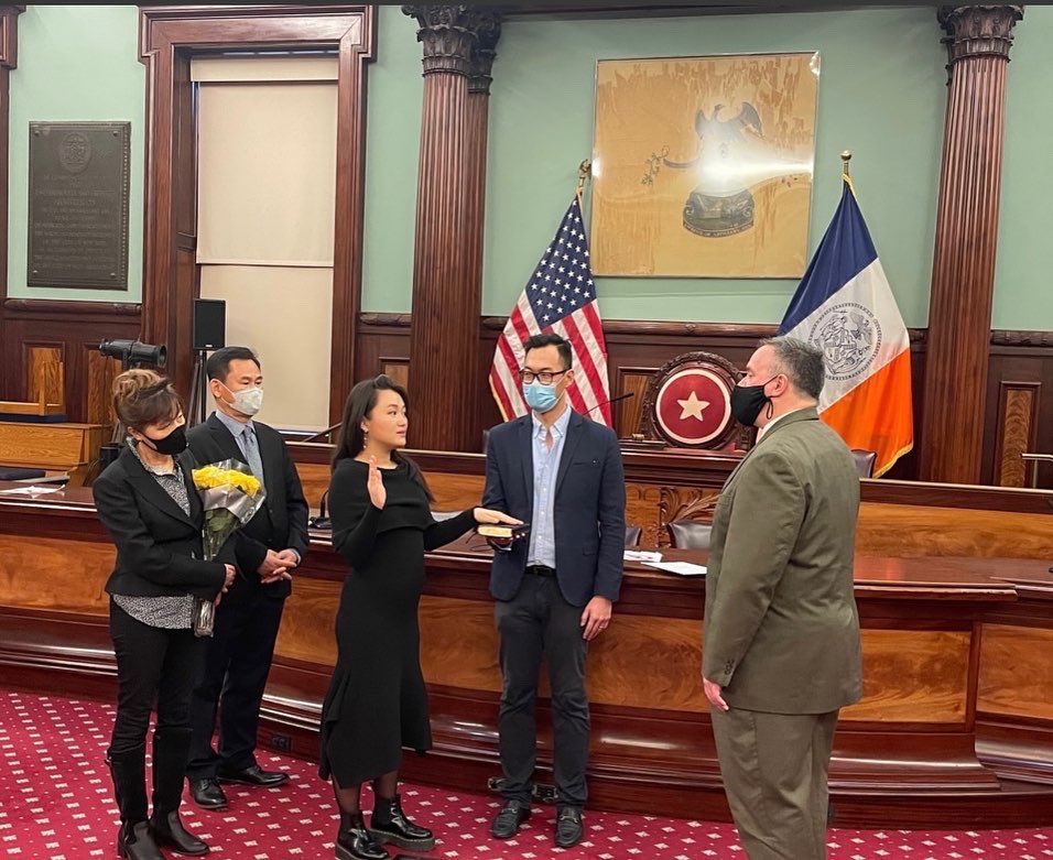 Julie Won is sworn in as council member for the 26th Council District at City Hall (Council Member Julie Won via Twitter)