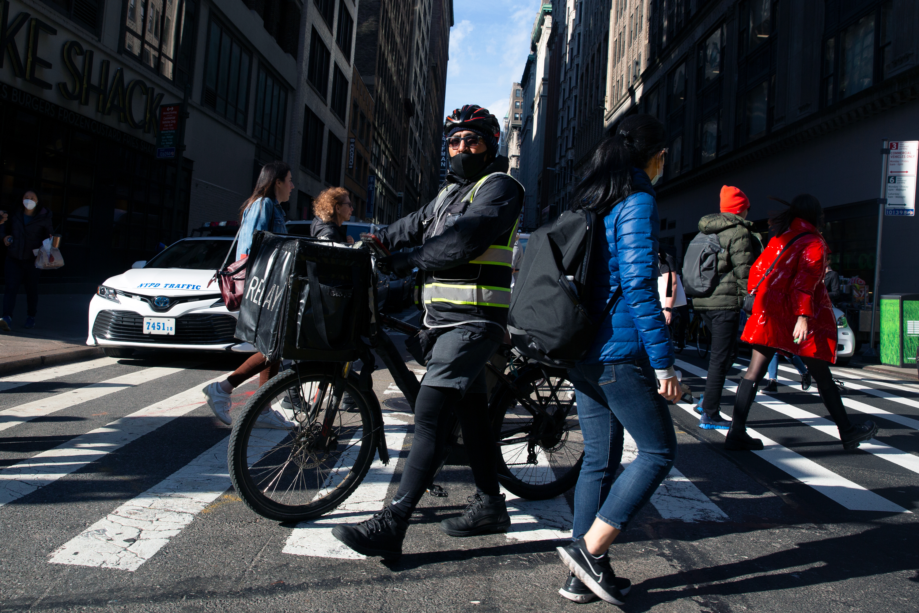 A worker delivers food in Midtown, Nov. 18, 2021. Ben Fractenberg/THE CITY