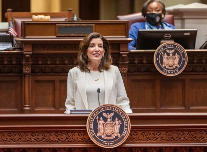Governor Kathy Hochul delivering the 2022 State of the State Address in the Assembly Chamber Jan. 5 (Darren McGee- Office of Governor Kathy Hochul)