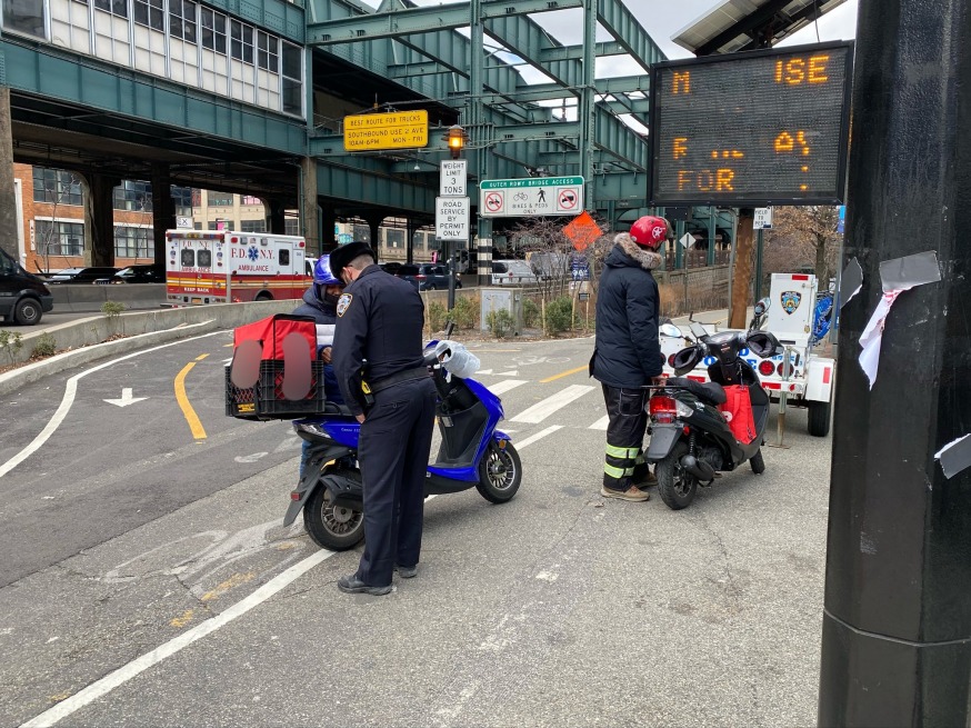 Officers from the 108th Precinct issued numerous summonses and confiscated three gas-powered mopeds at the entrance of the 59th Street Bridge bike and pedestrian path. The drivers were illegally using the bike lane to cross the East River, according to the NYPD.