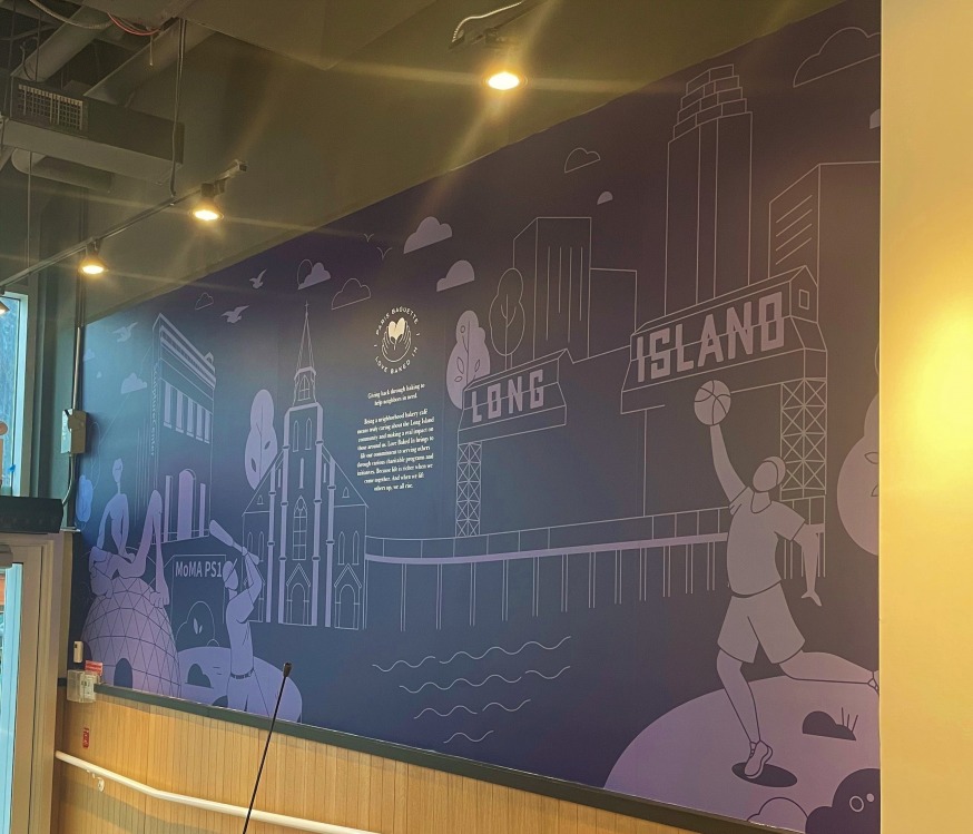 A mural with some Queens landmarks has been put up on a wall inside the store (Photo provided by Paris Baguette)