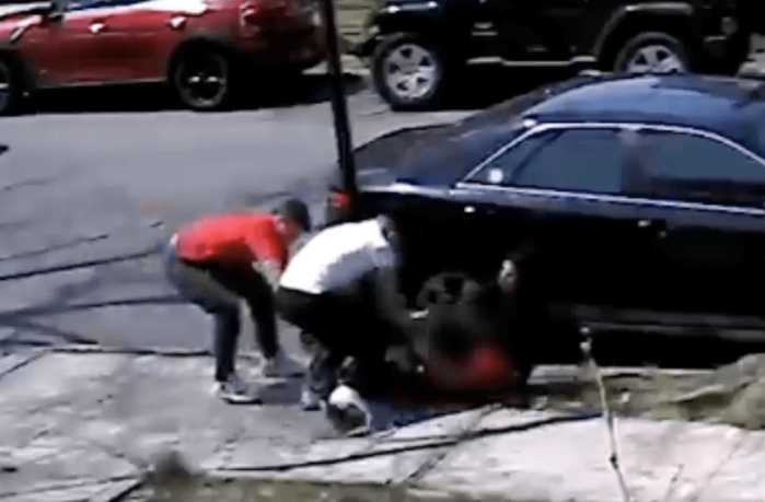 The NYPD released surveillance photos of one of the assailants. He was last seen wearing a red Sixers baseball cap with a dark hooded sweatshirt with light-colored pants.
