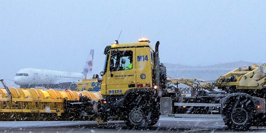 The snowfall caused havoc at airports in Queens Friday with hundreds of flight cancellations (Photo via @LGAairport)