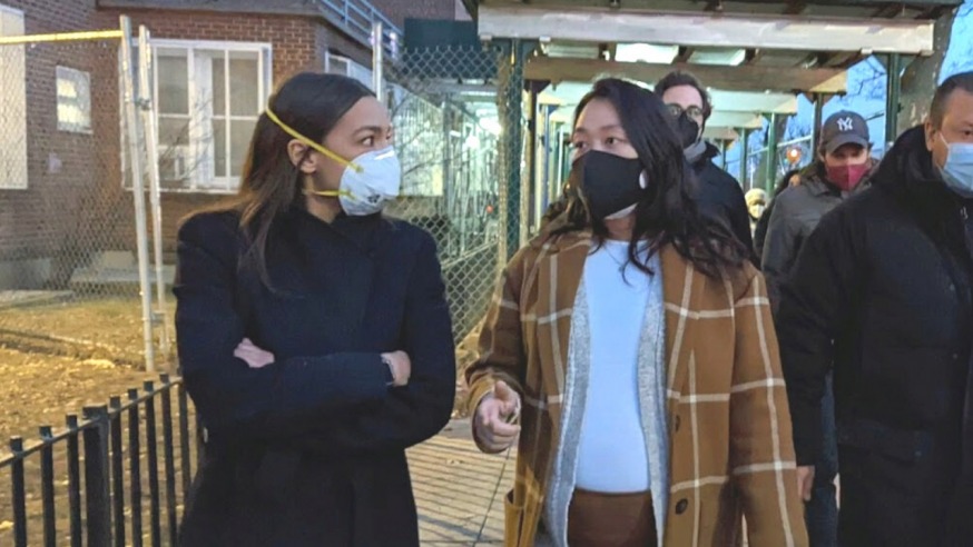 Congresswoman Alexandria Ocasio-Cortez (L) and Council Member Julie Won (R) visited the Woodside Houses Thursday where residents have been complaining about heat and hot water shortages (Photo: Julie Won via Twitter)
