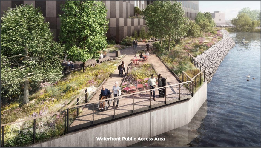Rendering of the public waterfront area outside Wildflower Studios (Courtesy of Wildflower LTD/ Bjarke Ingels Group)