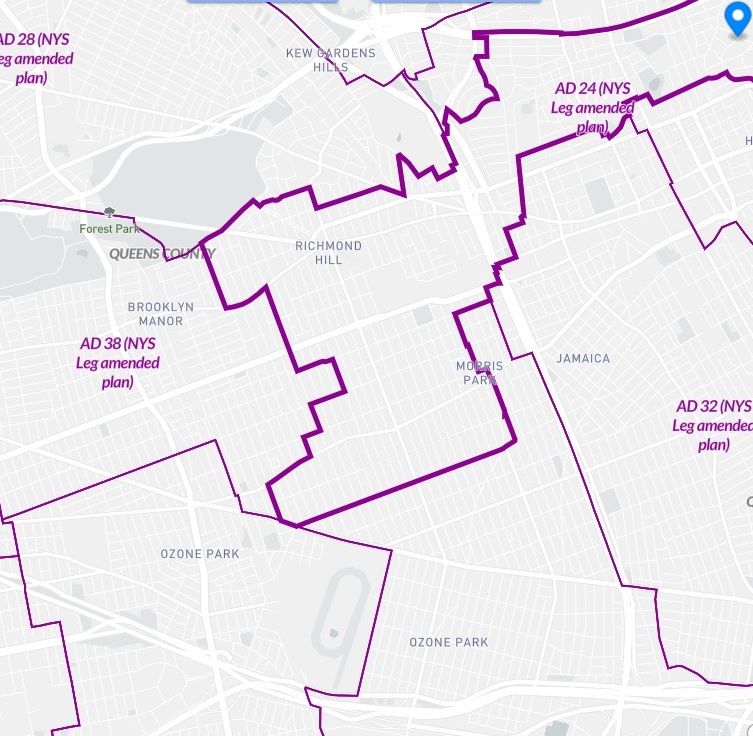 The maps put together by the Independent Redistricting Commission unify the neighborhoods of Richmond Hill and South Ozone Park into one assembly district (IRC)