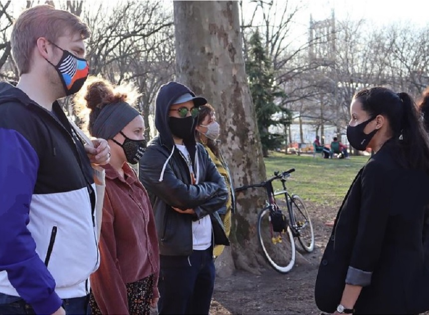 Tiffany Cabán speaking to District 22 residents in 2021 (Photo: Instagram @cabanforqueens)