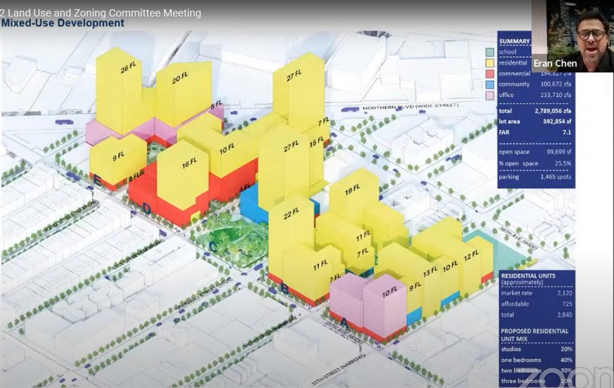 The developers plan to create a mixed-use district between 37th Street and Northern Boulevard, bound by 35th and 36th Avenues, that would consist of 18 buildings that would range in heights from nine to 27 stories. The developers announced the plan in 2020 and have been working with the Dept. of City Planning since in order to get their rezoning application certified.