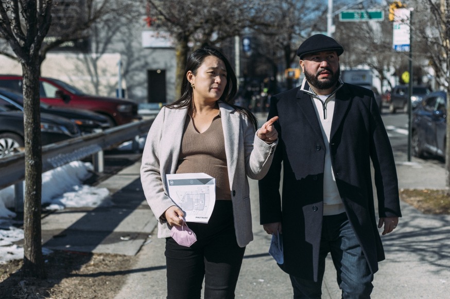 Council Member Julie Won takes Council Member Rafael Salamanca, chair of the council’s Land Use Committee, on a tour last month of 35th Avenue by 38th Street, where a development team plans to build Innovation QNS (Photo: Courtesy of CM Won)