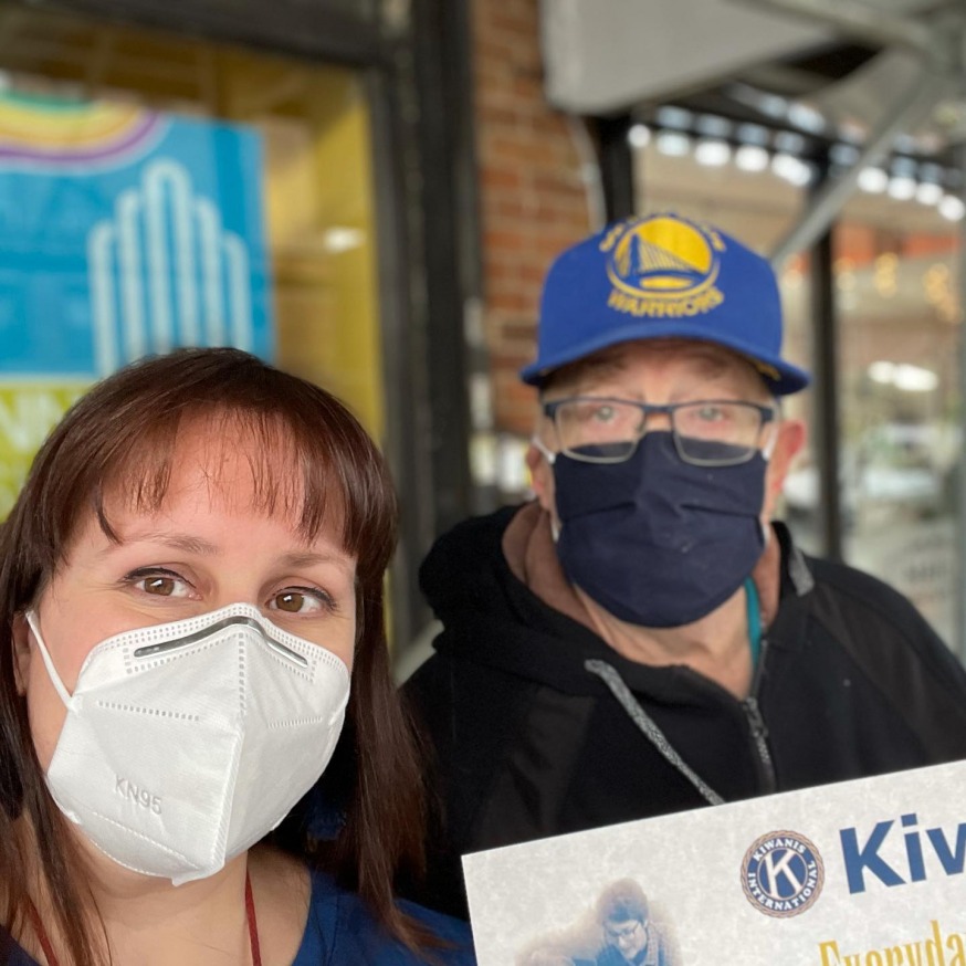 Howard Brickman, pictured, delivering an award from the Kiwanis Club to Jaime-Faye Bean, pictured, in December 2020 (Photo: Facebook)
