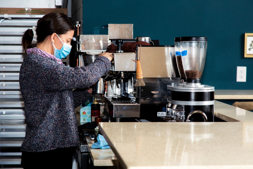 A worker brewing coffee inside Elevenses (Photo provided by Georgia Koutsoupakis)