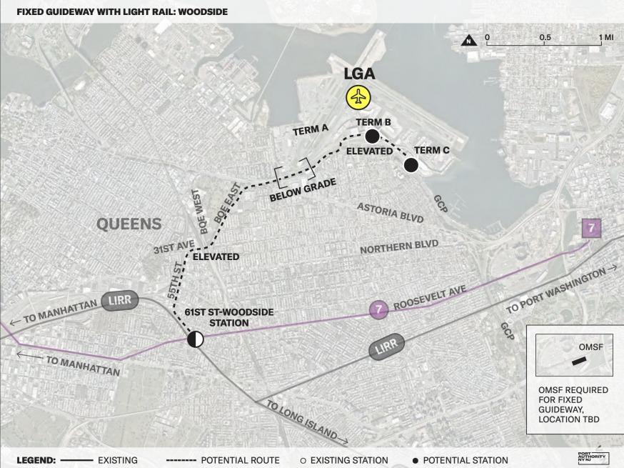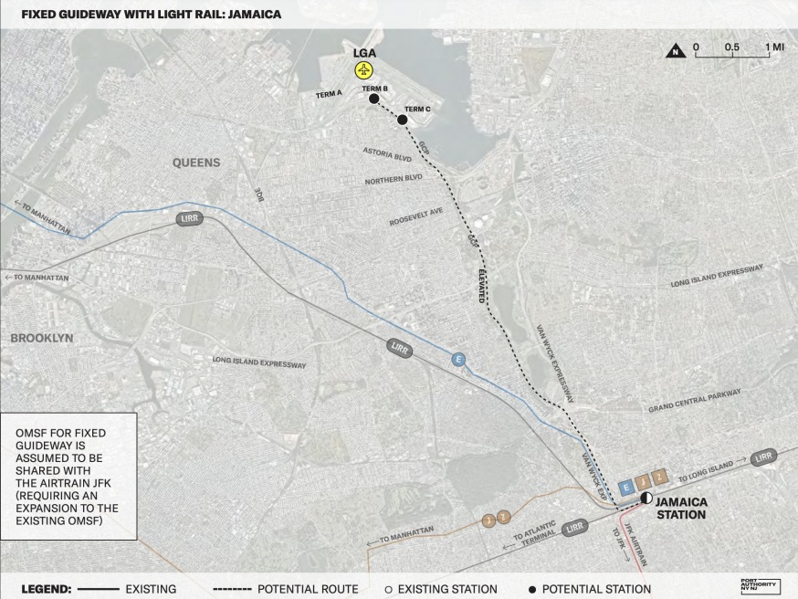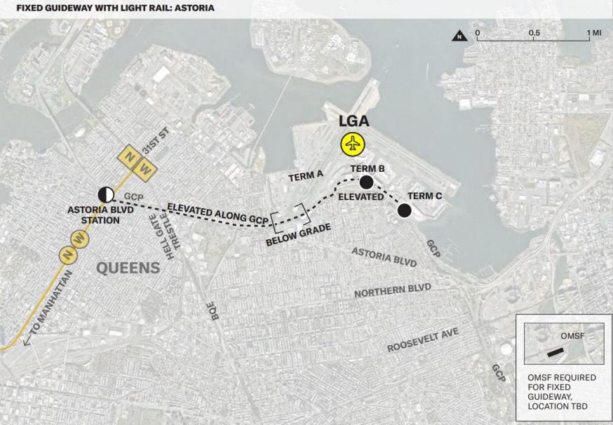 The Port Authority also proposed creating a light rail option that would go from the Astoria Boulevard N/W station and over the Grand Central Parkway to the airport.