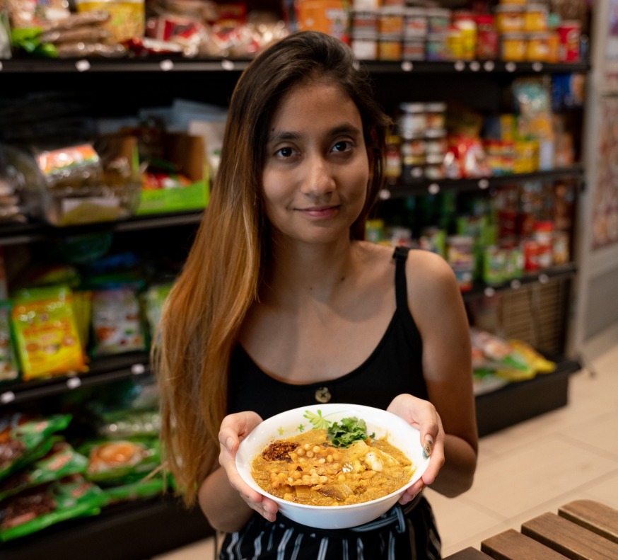 Yun, the daughter of the owners of Yun Café & Asian Mart, is pictured with a mohinga dish – a traditional Myanmar soup (Photo by Abby Faelnar, provided by Bryan Lozano)