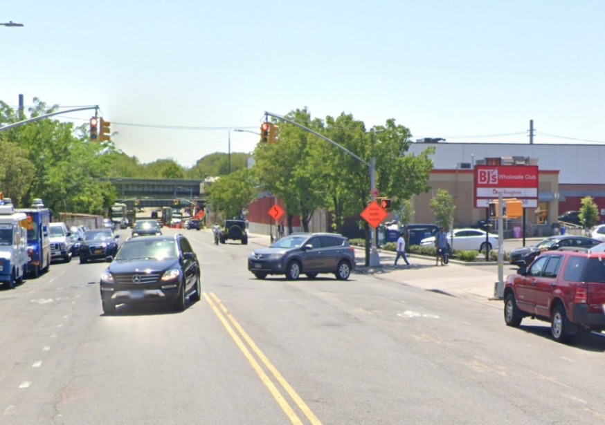 An 89-year-old woman was critically injured Saturday when she was struck by a motorist turning left out of a parking lot on 48th Street in Long Island City (screenshot of parking lot GMaps)