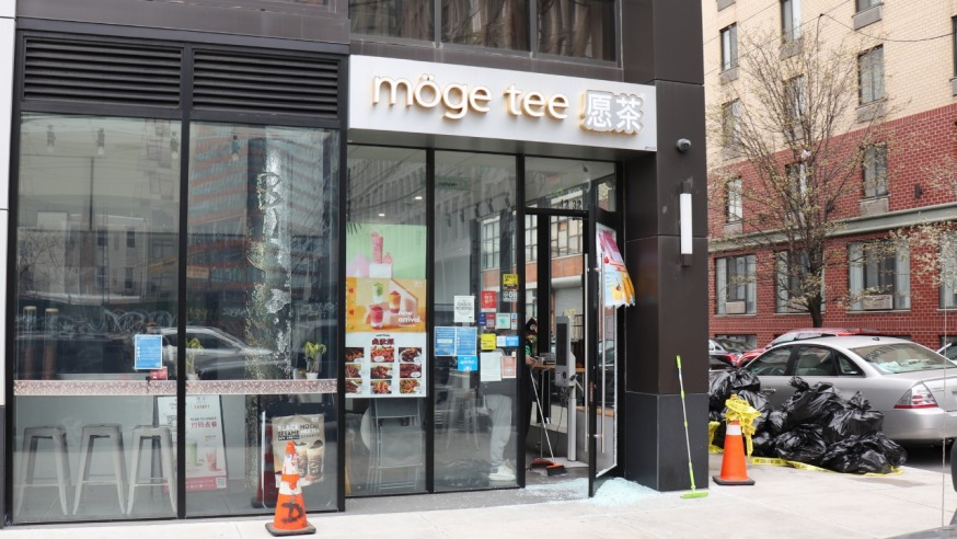 Around 15 minutes later, the pair targeted Möge Tee, a bubble tea store located at 42-38 Crescent St. by smashing through the glass front door. When inside, the assailants hauled out a cash register and fled, police said.