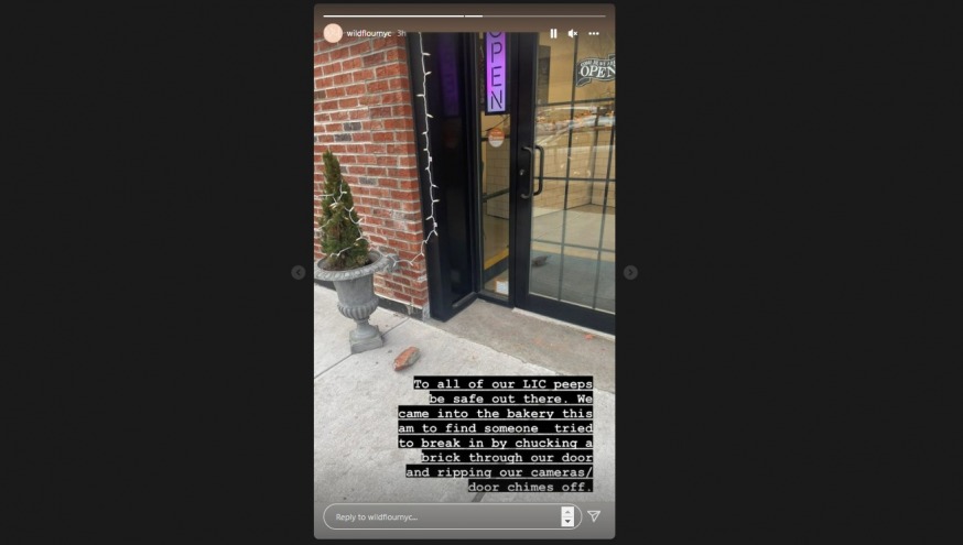 A rock was seen today outside Wild Flour, a bakery located at 9-03 44th Rd., after a botched burglary attempt (Photo via Instagram)