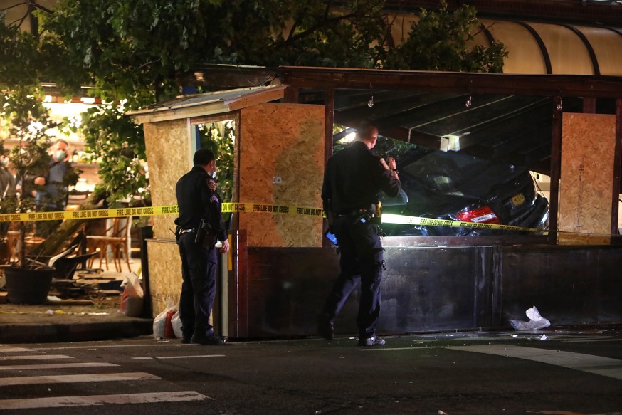 Their investigations found that the woman’s car was struck from behind by another vehicle on 35th Street before she accelerated and crashed into Lin, the parked cars and the outdoor dining structure.