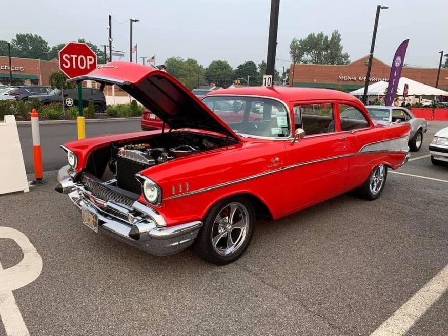 A vintage car on display during the 2021 classic car series at Bay Terrace Shopping Center (Jackie DeLuca/ The Bay Terrace Car Show via Facebook)