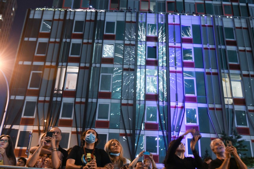 Residents watching the Macy’s fireworks show on July 4, 2021, in Hunters Point (Photo by Ed Reed/Mayoral Photography Office)