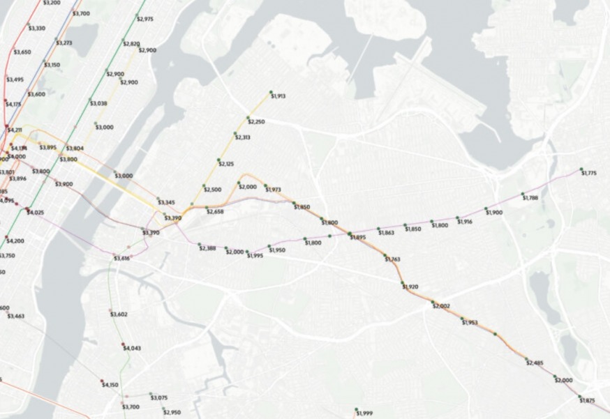 RentHop released data showing the median amount paid for a 1 bedroom at each station, as well as the increase.