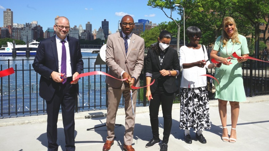 The ribbon was cut by Queens Borough President Donovan Richards, Councilmember Tiffany Cabán, EDC President and CEO Andrew Kimball, Community Board 1 District Manager Florence Koulouris and the president of the Astoria Houses Tenant Association Claudia Coger.