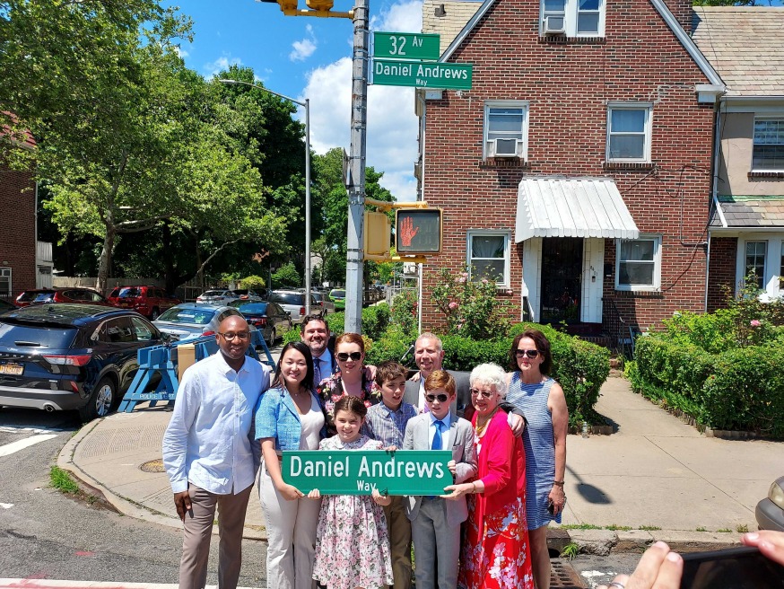 A co-naming ceremony was held at the street corner on Saturday that was attended by Council Member Julie Won and Queens Borough President Donovan Richards—along with Andrews’ family and past work colleagues.