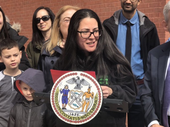Queens DOT Commissioner Nicole Garcia at P.S. 11 in Woodside. Council Member Holden is calling for her firing (File Photo)
