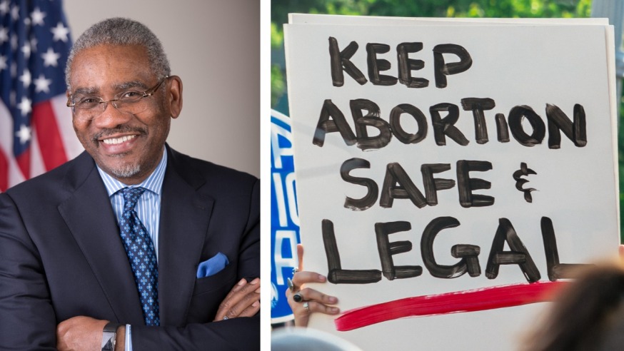 A left-wing faction of the Queens County Democratic Party (QCDP) is calling on the organization to only endorse candidates that pledge to defend reproductive rights and voting rights. Congressman Gregory Meeks, the Chairman of the Executive Committee of the QCDP (L), and a pro-choice sign (Photos: U.S. Congress (L) and Gayatri Malhotra via Unsplash (R))