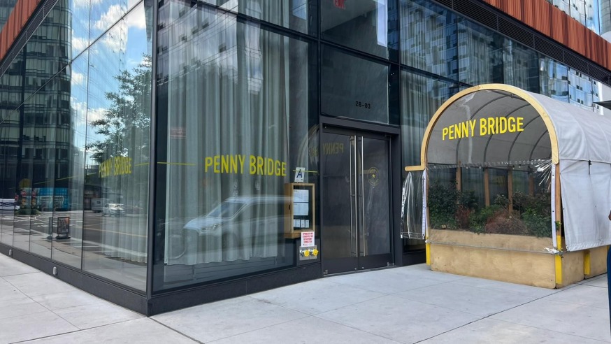 The restaurant is located on the ground floor of The JACX high-rise office building, a 26-story two-tower development at 28-03 Jackson Ave. Penny Bridge was the first business to occupy the space situated on the corner of Jackson Avenue and 42nd Road.