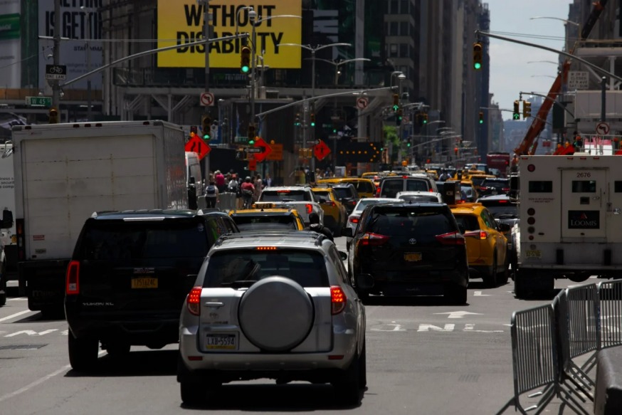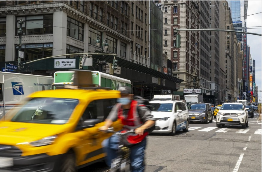 Midday traffic rolls down Seventh Ave in Midtown this week. Hiram Alejandro Durán/THE CITY