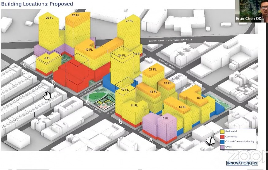 The developers’ overarching plan involves creating a mixed-use district between 37th Street and Northern Boulevard, bound by 35th and 36th Avenues, which would consist of more than a dozen buildings that would range in height from eight to 27 stories—as well as two acres of green space and space for nonprofits.
