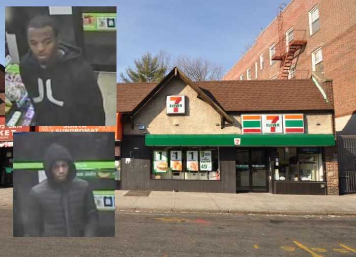 Police from the 113th Precinct in Jamaica are looking for two thieves who allegedly robbed a man at gunpoint and then used his credit card to make purchases at a Brooklyn bodega early Monday morning, Aug. 1.
