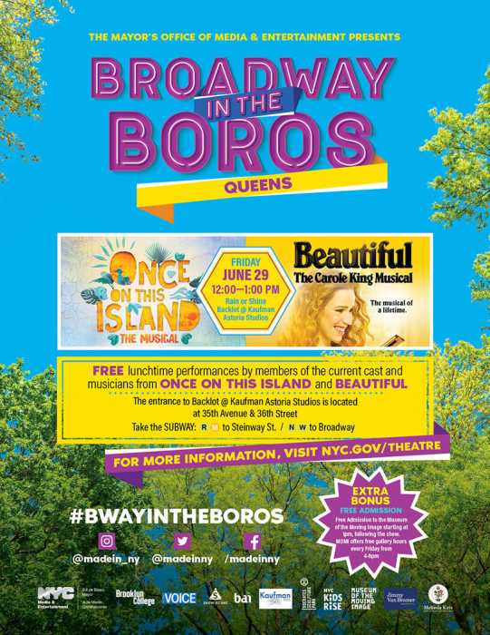 “Our Astoria community welcomed Broadway in the Boros back with open arms, which is a true testament to this neighborhood’s strong connection to culture and the arts,” said Tracy Capune, vice president of Kaufman Astoria Studios. “Thanks to support from the Mayor’s Office of Media and Entertainment, the Kaufman Arts District hosted three world-class Broadway performances in our Kaufman Astoria Studios’ backlot — paying tribute to our historical past while also acknowledging the bright future of emerging artists and performers.”