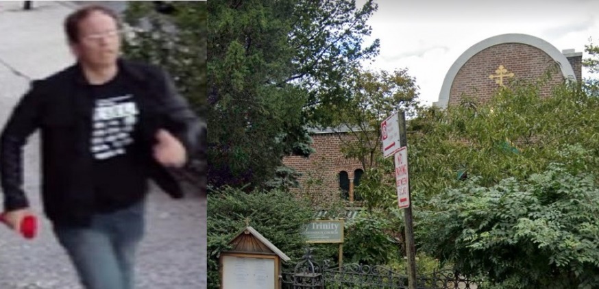 Police are looking for a man who allegedly swiped a wallet from a 63-year-old woman at a church in Astoria and assaulted her when she confronted him (Suspect/NYPD and church/GMaps)