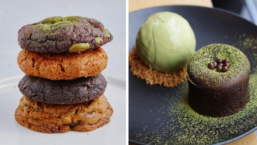Cookies (L) and the Matcha Lava Cake (R) at Spot Dessert Bar (Photos: Instagram)