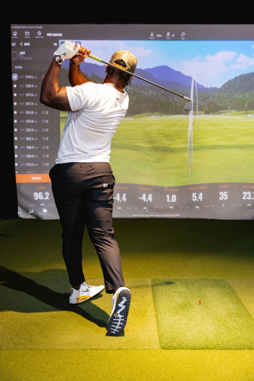 A player using a golf simulator at a Five Iron Golf facility (Photo provided by Knight Eady)